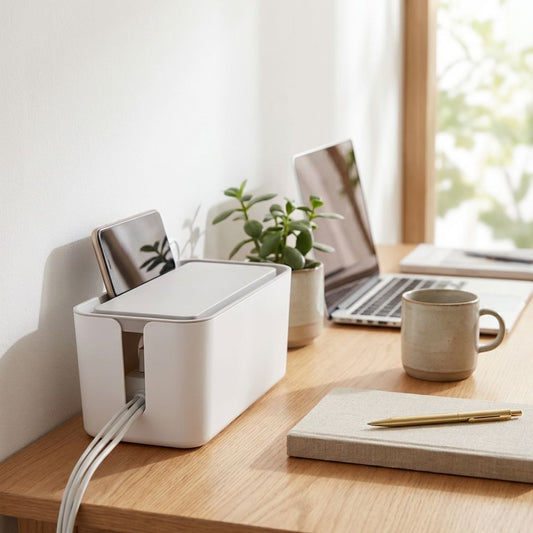 Chez Rangement Zone, nous proposons différentes options adaptées à tous les besoins et tous les styles de bureau. Que vous cherchiez une solution discrète ou un accessoire qui s'intègre parfaitement à votre décoration, vous trouverez votre bonheur dans notre gamme de produits dédiés à la gestion des câbles.